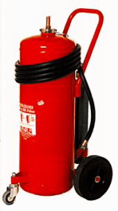 Die fahrbaren Pulver-/ Schaumlöschgeräte sind Aufladelöscher mit einem Inhalt von 50 kg. Jeder Behälter ist mit einem Sicherheitsventil ausgerüstet. Als Treibmittel kommt Stickstoff (3l - 150bar) aus einer seperaten Treibgasflasche zum Einsatz. Die fahrbaren Pulver-/Schaum-Löschgeräte können mühelos durch eine Person am Brandherd eingesetzt werden.